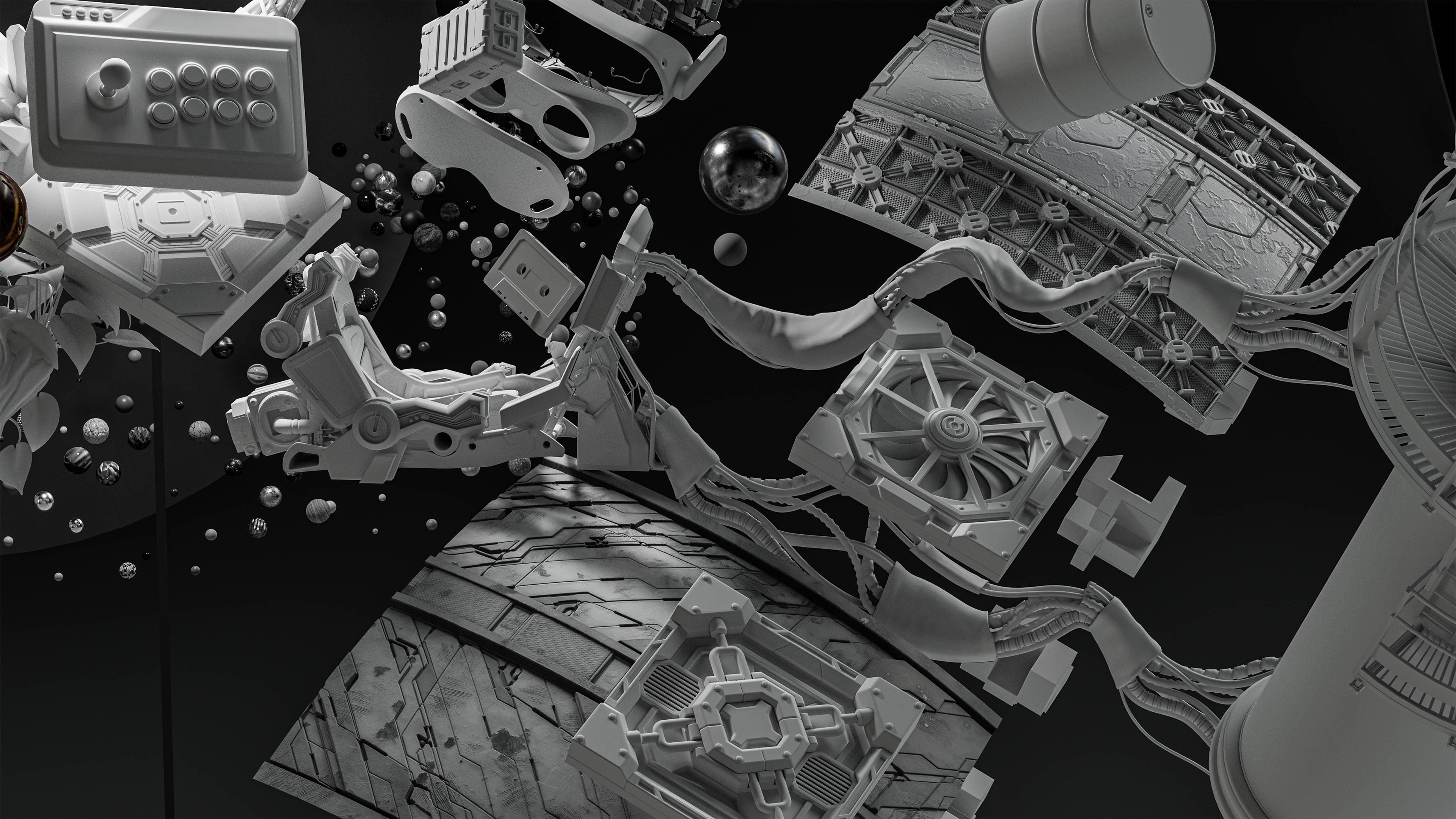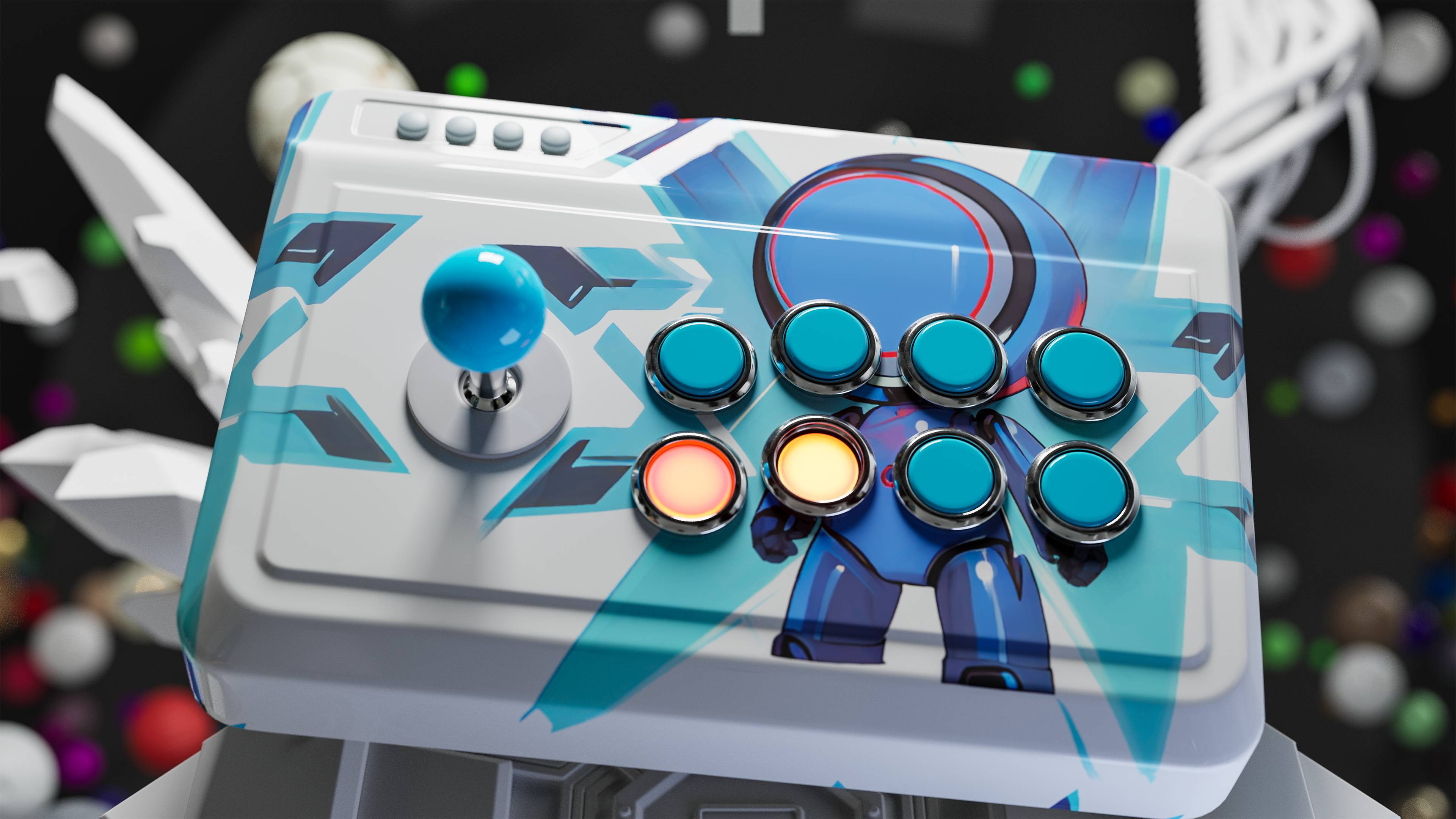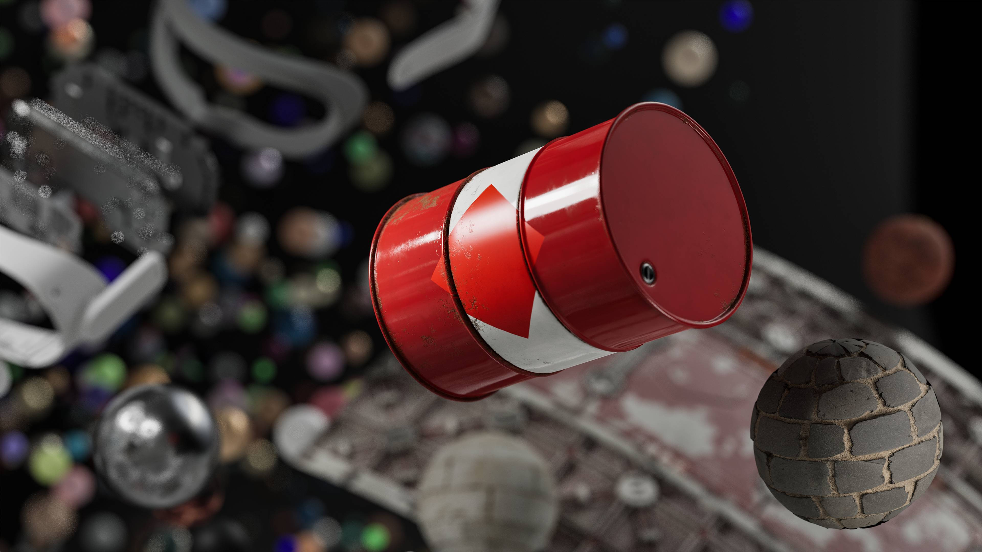 I created a GDC video for the Substance 3D Assets team celebrating video games. Half of the scene is dedicated to sci-fi: fans, cables, vents, explosive barrels and more. I painted a tiny arcade stick with MeetMat for fun.