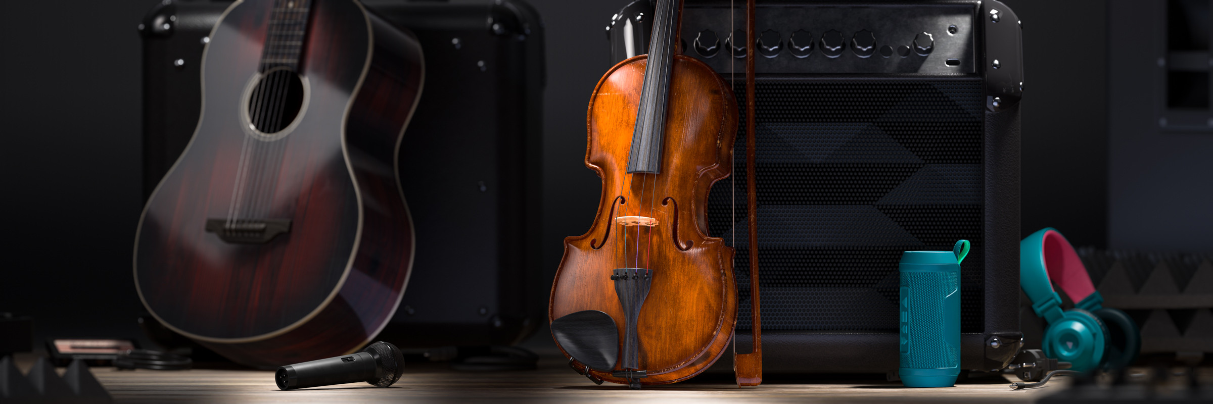 Models and materials are from the latest Music collection for the Substance 3D asset library