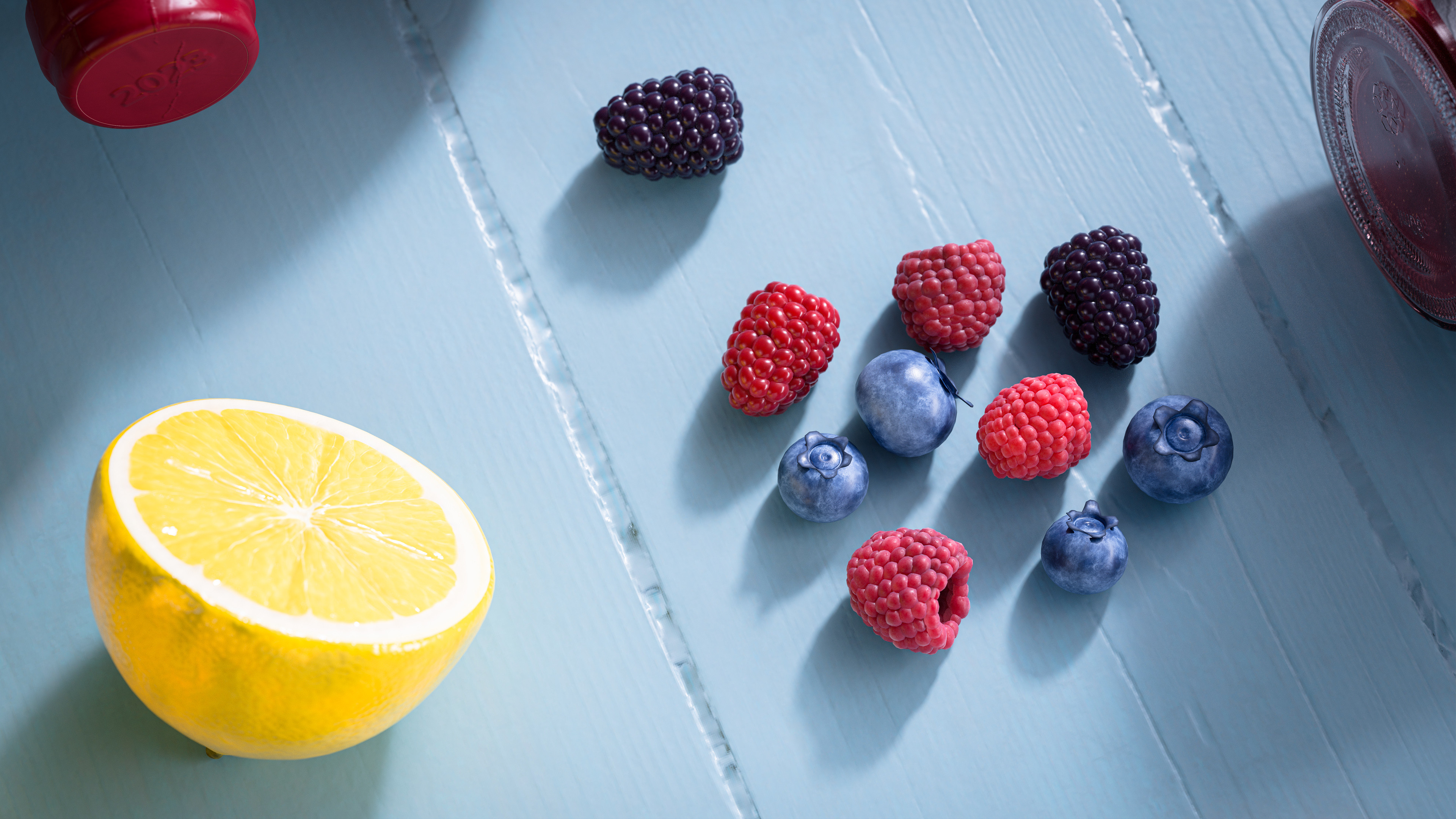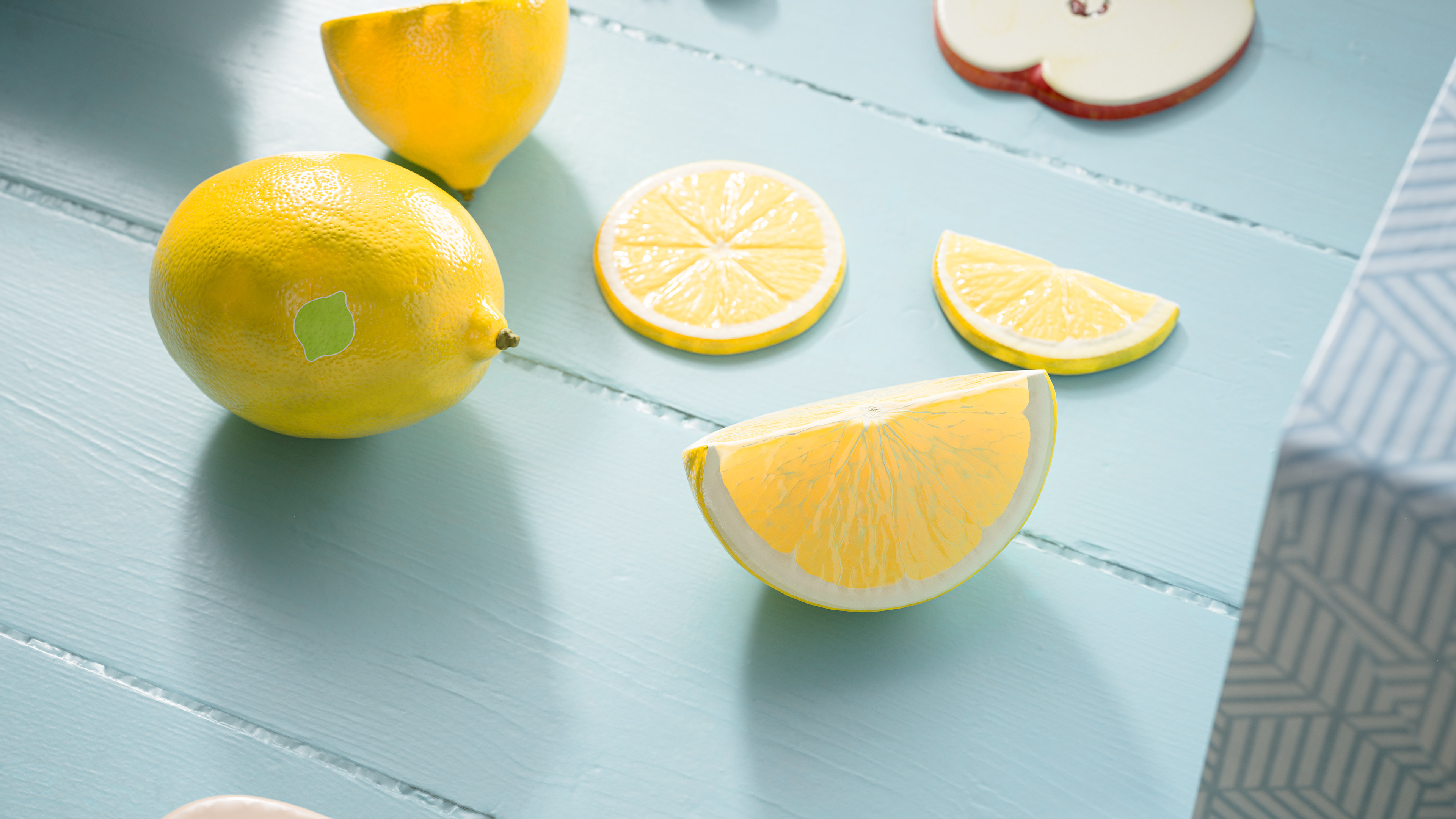 Models and materials from the 3D asset library. Apples and coffee were made by Maximilien Vert at Adobe.